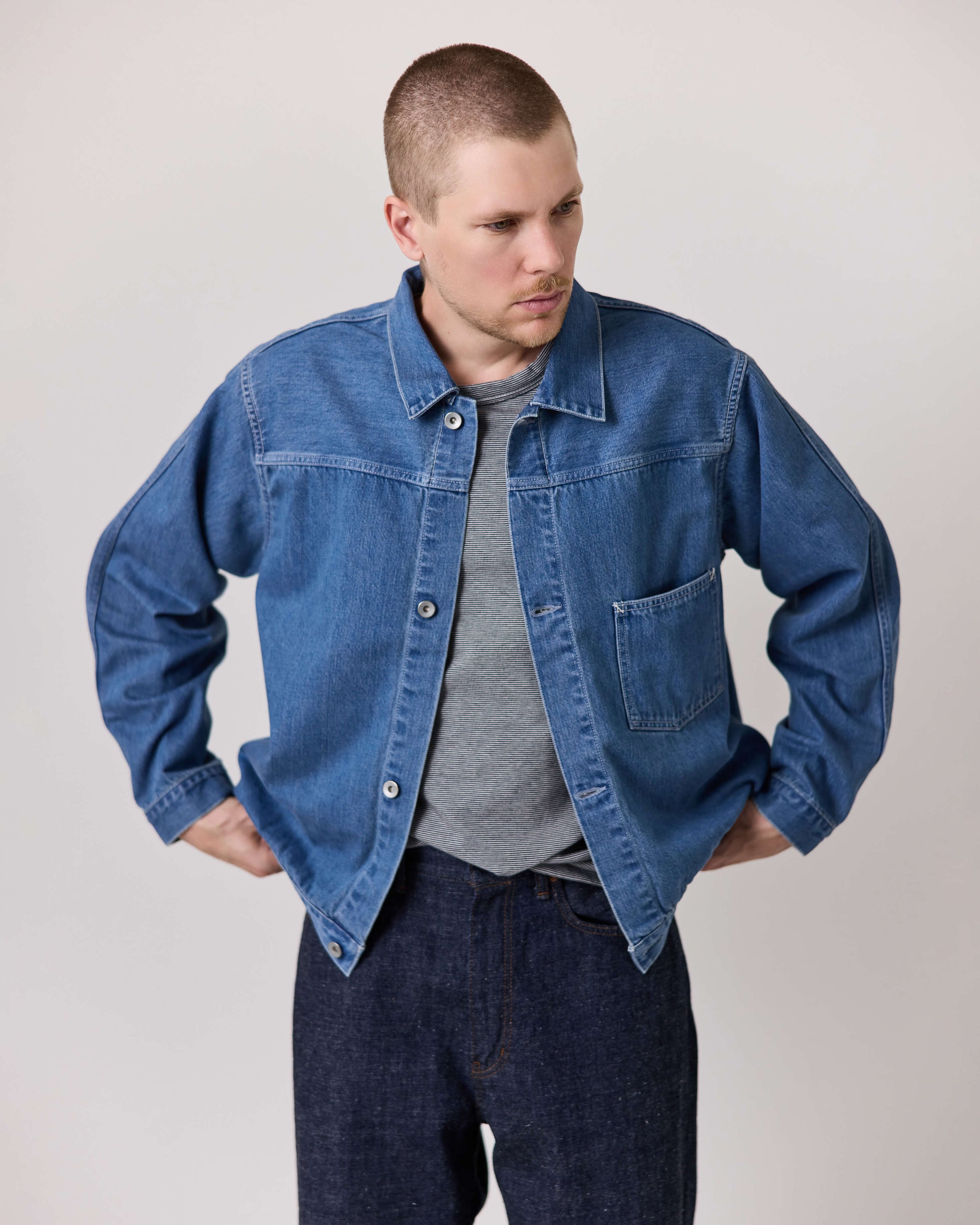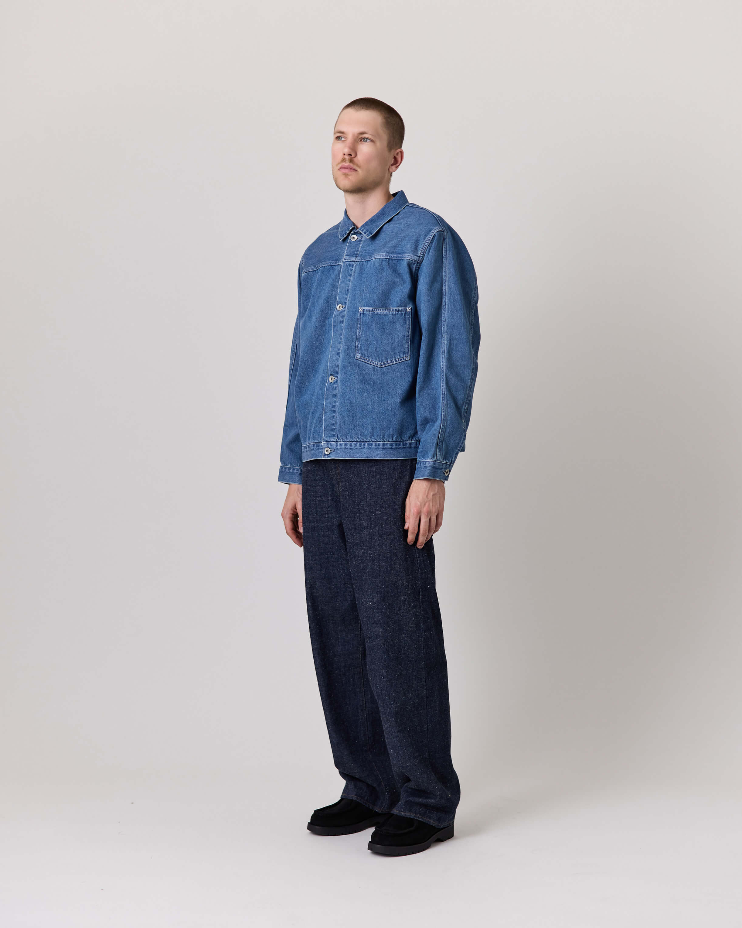 Nanamica Short Denim JacketNanamica Micro Stripe Pocket TeeNanamica Selvage Denim PantsKleman Padror VV Noir
